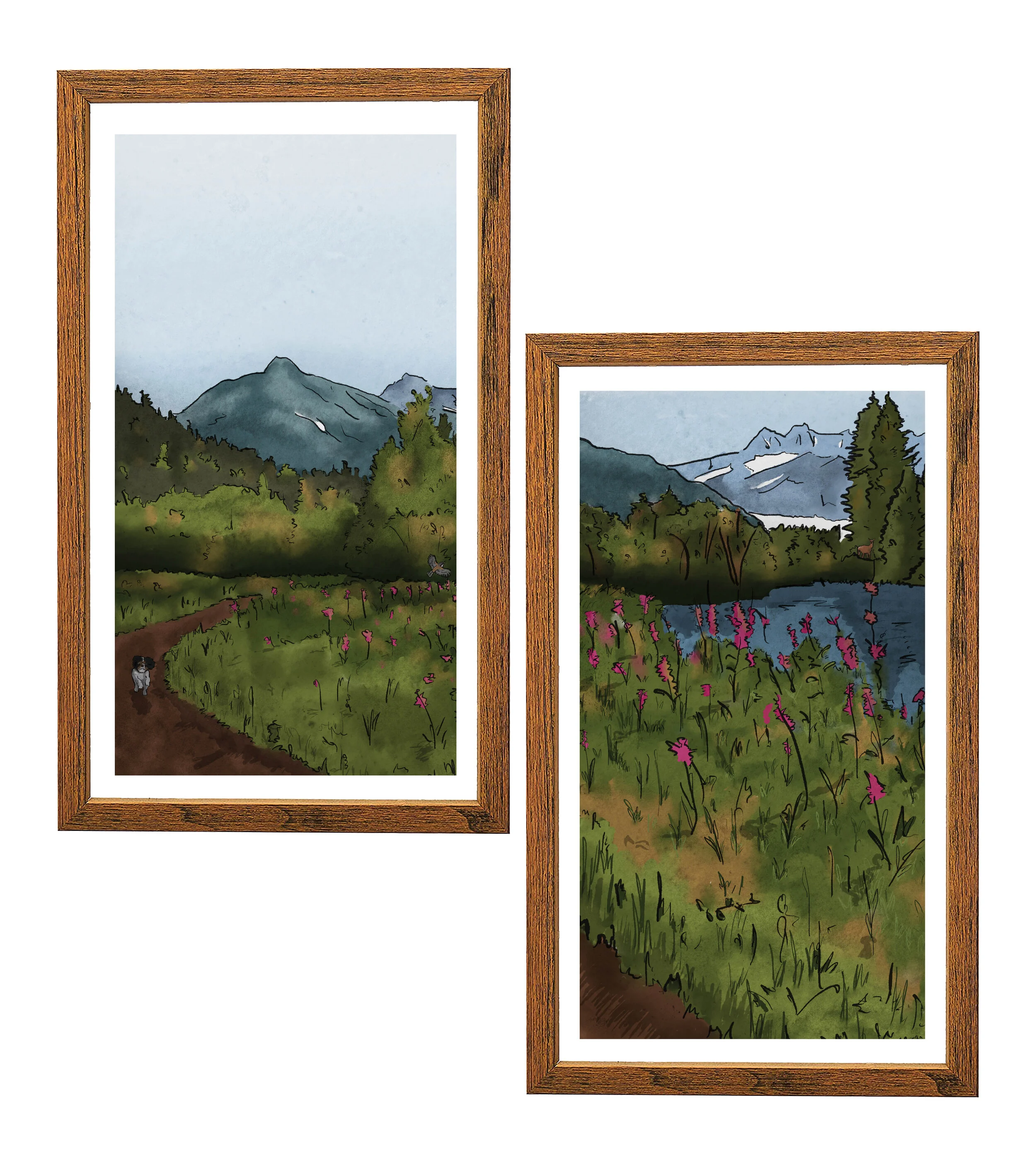 Inspired by Christine’s regular trail runs during the COVID-19 pandemic, Forest Shadows is a series of prints that, when combined, tell a collective story about the emotional journey of a walk through the forest. This project is a reflection of the lessons learned through challenges, but also a love letter to Juneau—a place I’m grateful to be exploring during this pandemic.